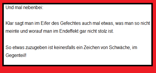 Dass es bei all dem nur wichtig ist, dass man stark genug ist dann auch zum Gegenüber zu gehen und zu sagen: